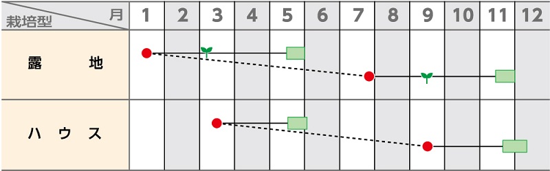 ※この作型表は参考です。地域や栽培方法によって異なります。
