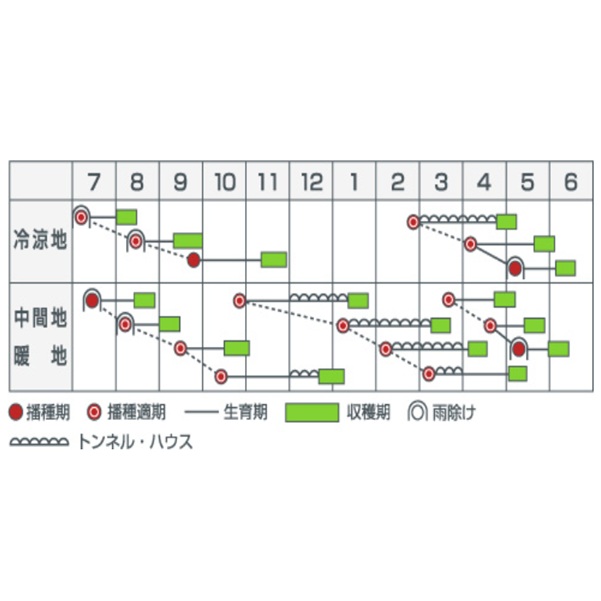 作型は、秋栽培から厳寒期まき、さらに春まきと幅広い作型に利用できます。