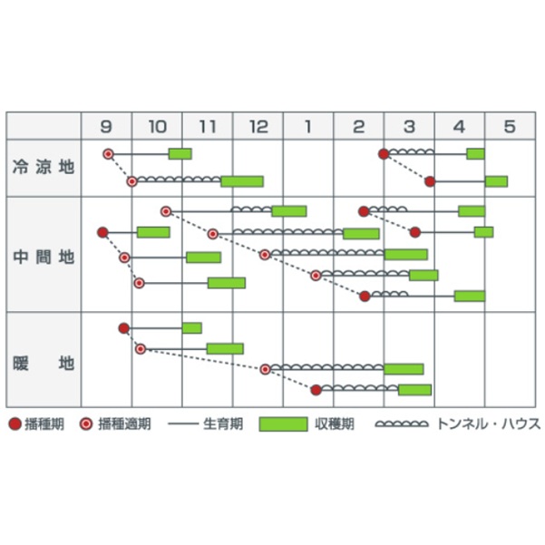 やや低温伸長性があるので、秋冬栽培に適します。