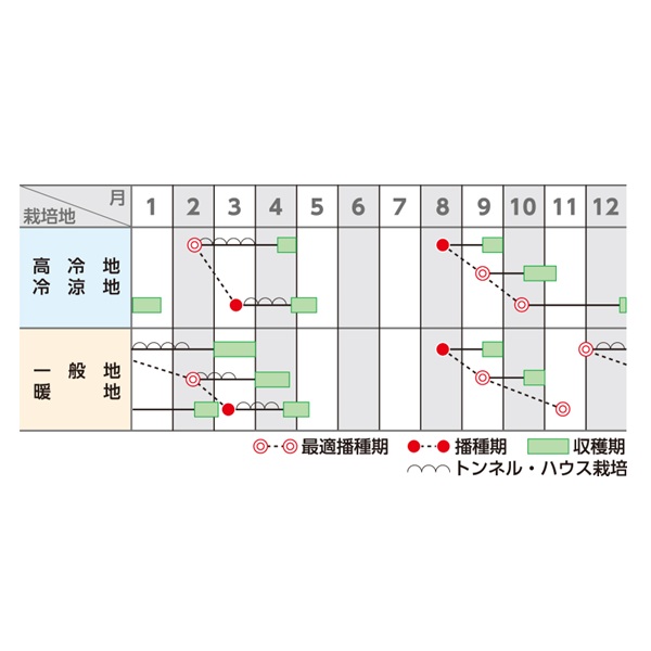 晩夏~秋~早春まき用。耐暑・耐寒性すぐれる豊産品種