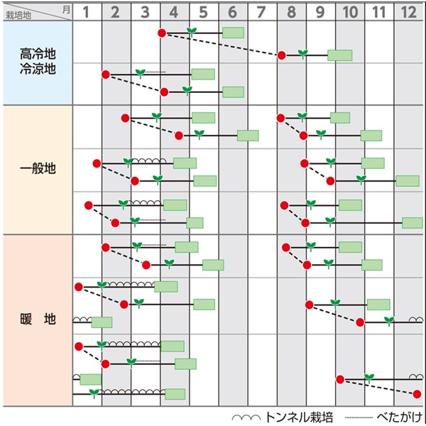 ※この作型表は参考です。地域や栽培方法によって異なります。