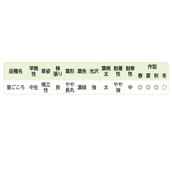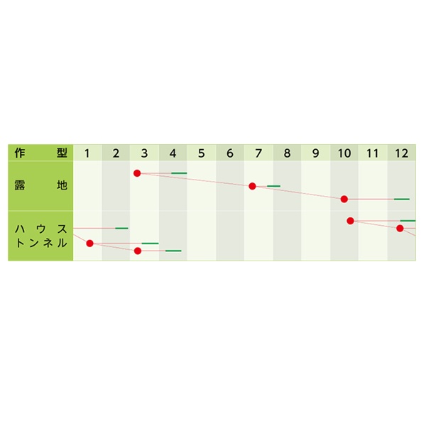 周年栽培可能だが、春~秋蒔きで特性を発揮する。