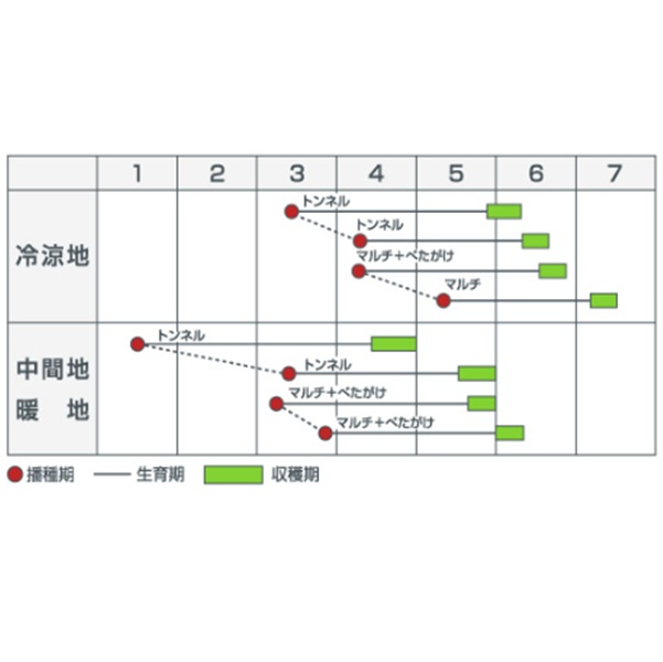 ●作型は、中間地の1月下旬~2月まきトンネル栽培、冷涼地の4~5月上旬まき
