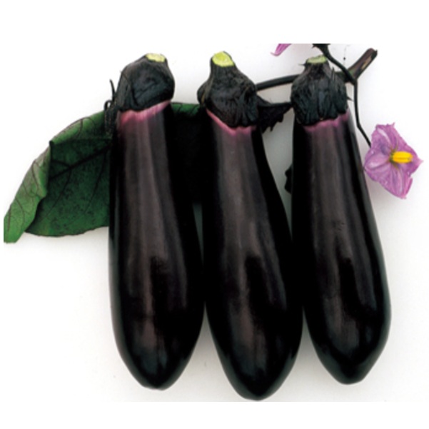 果形はやや長めの中長形で、濃黒紫色、光沢は抜群です。