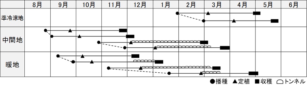 ・結球安定性が高く、厳寒期を除く冬~春の広い作型で栽培可能