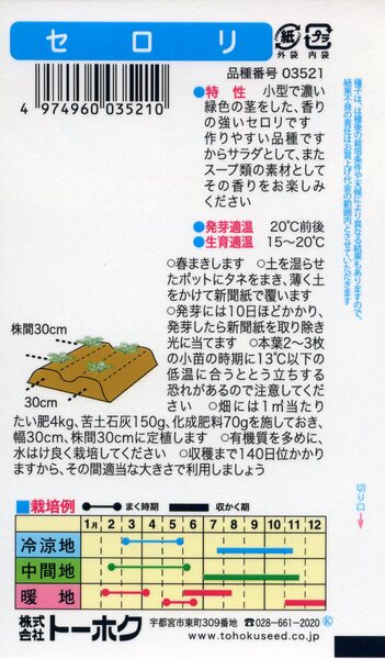 小型で濃い緑色の茎をした、香りの強いセルリー