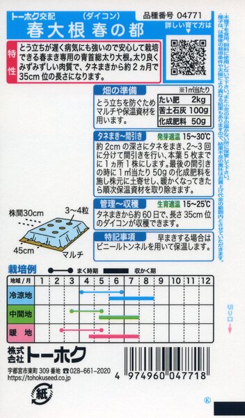 とう立ちが遅く安心して春まきできる、約2ヶ月で収穫できます