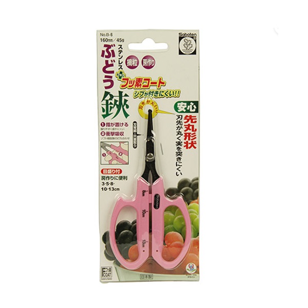 フッ素加工でヤニがつきにくく先丸刃で実を突きにくい。