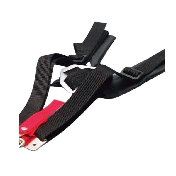 刈払機を両肩でしっかり背負えるバンド。長時間でも楽々作業。