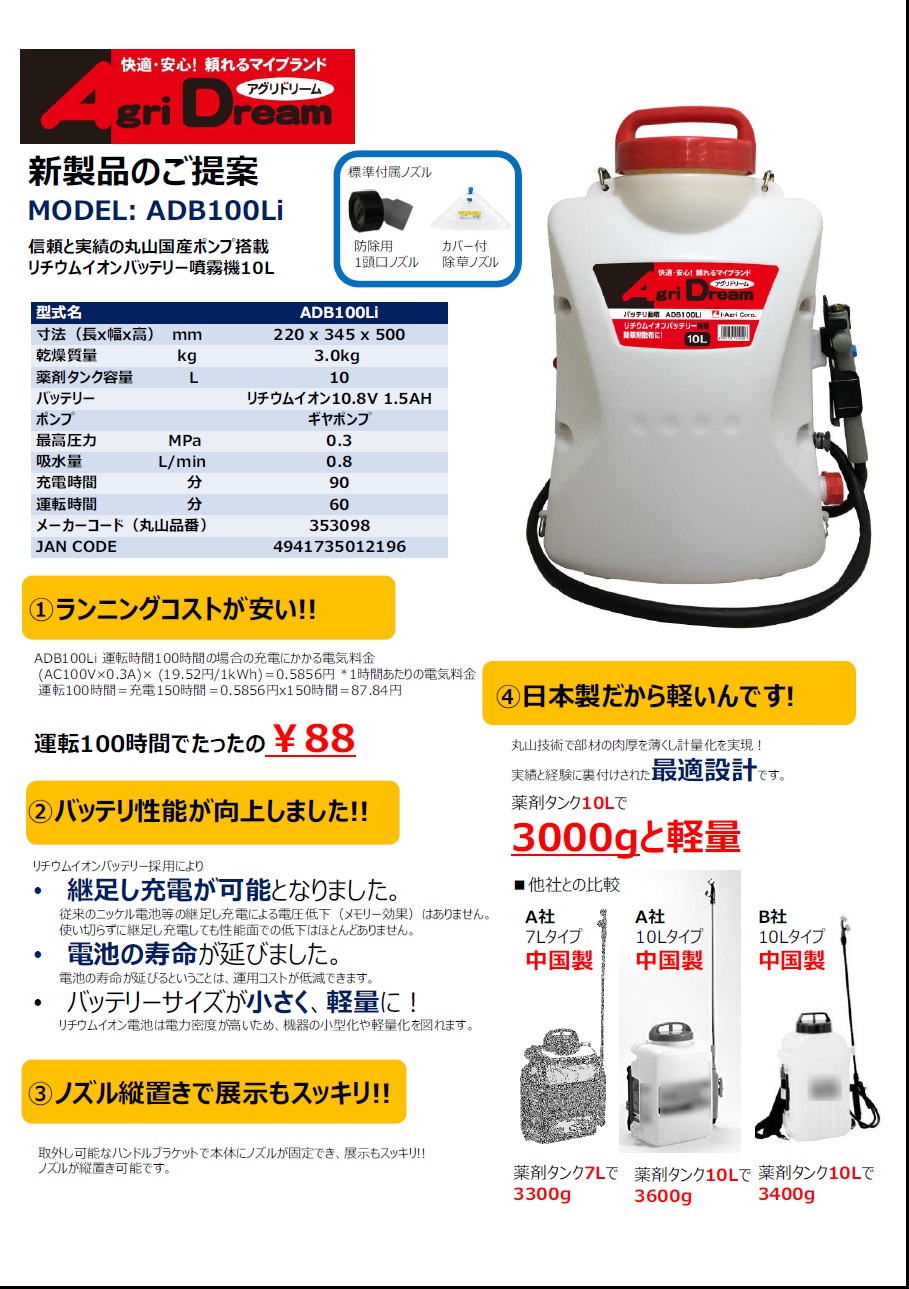 リチウムイオンバッテリー噴霧器 ADB100Li