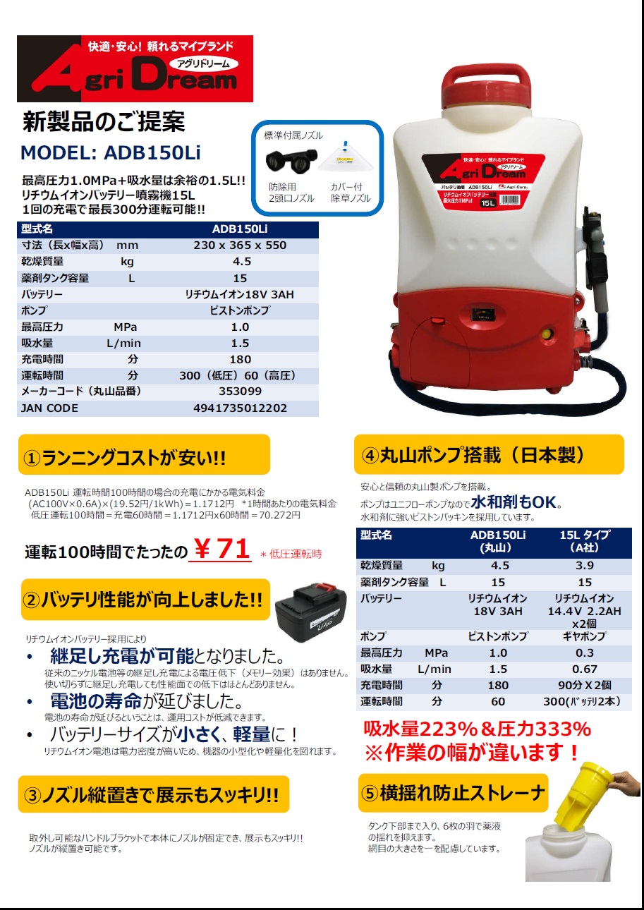 リチウムイオンバッテリー噴霧器 ADB150Li