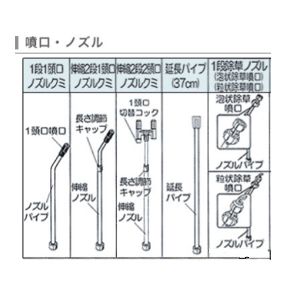 ノズルパイプ長さ:150.5~100 cm (伸縮2段ノズル 113.5~63 cm + 延長パイプ 37 cm)