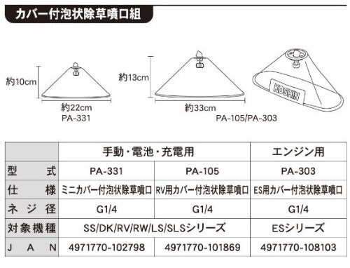 工進 HSシリーズ用 カバー付泡状除草噴口 PA-105