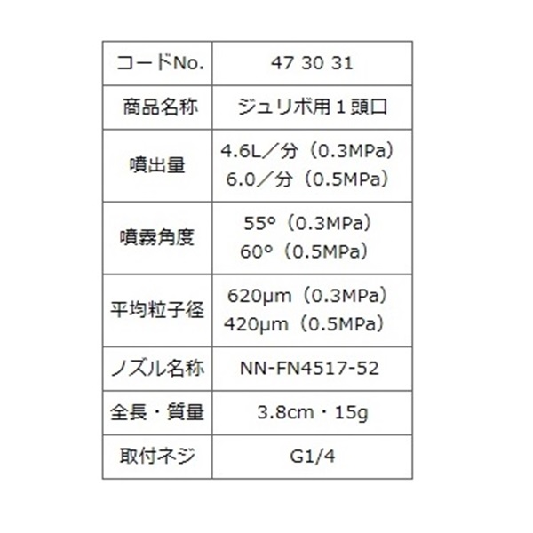 苗の倒れや土の流れ、ノズル の破損等があり危険です。(圧力値は、噴霧中におけるノズル先端部の値)