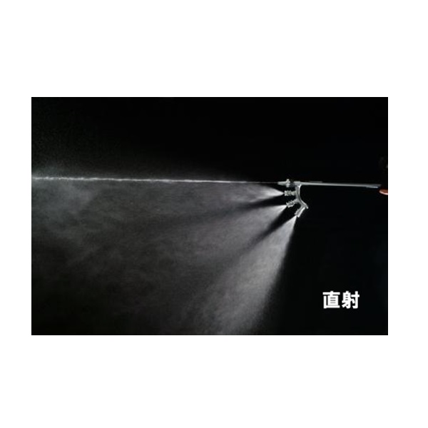 手元握りにより主噴口が直射、円錐とスプレーパターンが変化