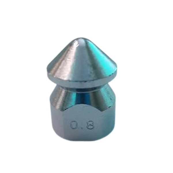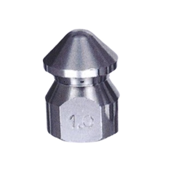 下水管等の配管内部の洗浄に。ホースの先端に取り付け動力噴霧機で加圧しコックを開くと自力で配管内部を洗浄しながら突入していきます。G1/4