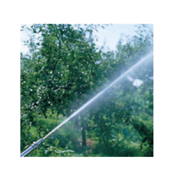 高い樹木や遠距離散布に最適。(果樹・造園用)耐磨耗性と耐蝕性に優れたセラミックノズルチップを採用。薬液を止めることが出来ないので、コック装着が前提です。取付径8.5mm、最大到達距離15m、吐出量13.4~14.9L/分(2Mpa) 重量940g