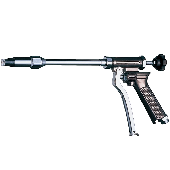 片手で操作できる軽量で使いやすい遠距離自在ピストルタイプ。到達性にすぐれた高木及び洗浄にも最適なノズルです。
