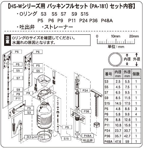 ・仕様:HS-Wシリーズ パッキンフルセット