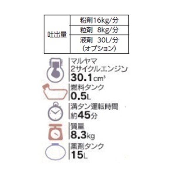 1キロ剤から肥料まで散布微調節が簡単にできるWシャッター搭載。