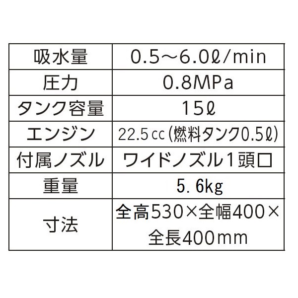 ・重量5.6Kg 最大圧力0.8Mp 吸水量0.5~6.0L/min