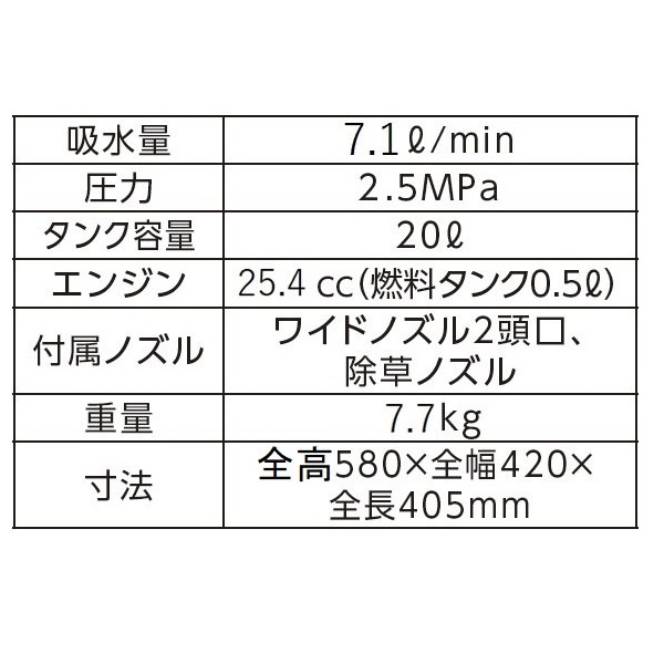 ・重量7.7Kg 最大圧力2.5Mp 吸水量7.1L/min