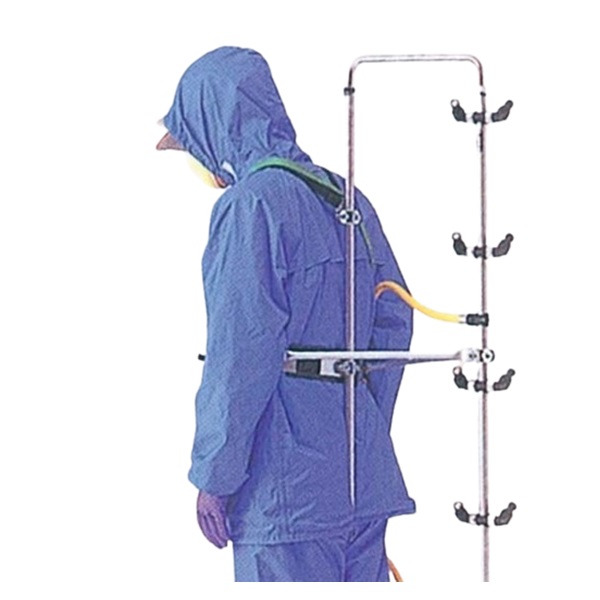 背中に背負って楽々噴霧。各ノズルにはストップ機構が内臓されています。作物の生長にあわせて霧の上下幅が替えられます。