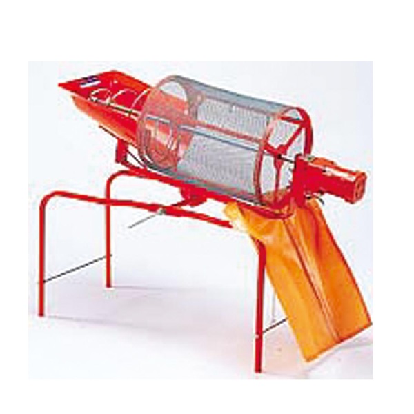 急角度にセットした場合と緩い勾配で回転させた場合は、フルイの滞留時間が違ってきますので、選別の状態が変わってきます。湿度のある土などは選別の途中網を軽く叩きますと目詰まりが解消出来ます。