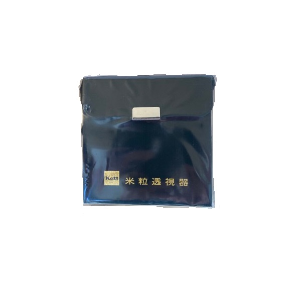 玄米の品質検査の際に、胴割粒の有無・程度・混入率を、短時間で正確に調べるために作られた米粒透視器です。ガラス板上の赤線枠内に普通玄米約100粒が並ぶように設計してあります。さらに、反射鏡を裏返すと黒色板となり、カルトンの代わりにも使えます。