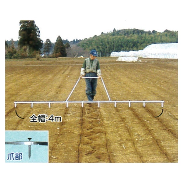組立て式なので、軽トラックの荷台に収まります。ハウス内でも使用できます。畝幅を自由に設定できます。最大幅4m 爪10個(標準)