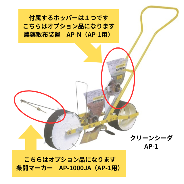 播種ロールは別売りとなります。 写真は、オプションの農薬散布装置、条間マーカーを付で、左記は付属しません。