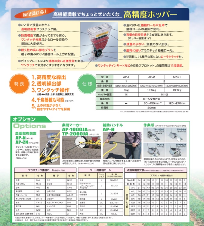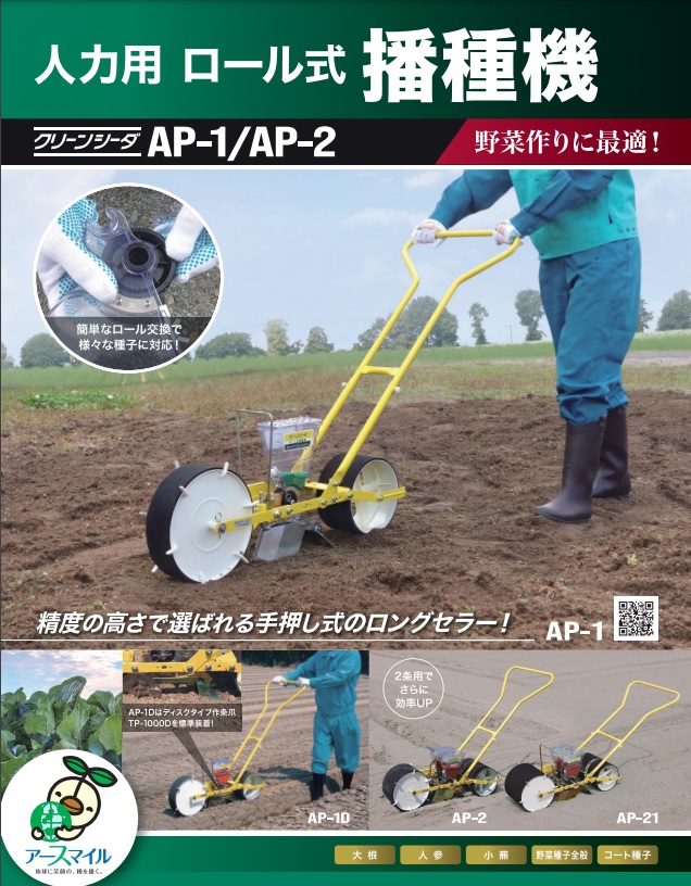 2条まき機で2倍のゆとりをもたらす、人力用ロール式播種機!