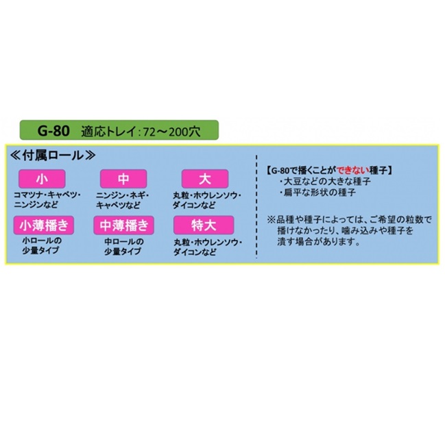 6つのロール交換で様々な裸種子が播けます。