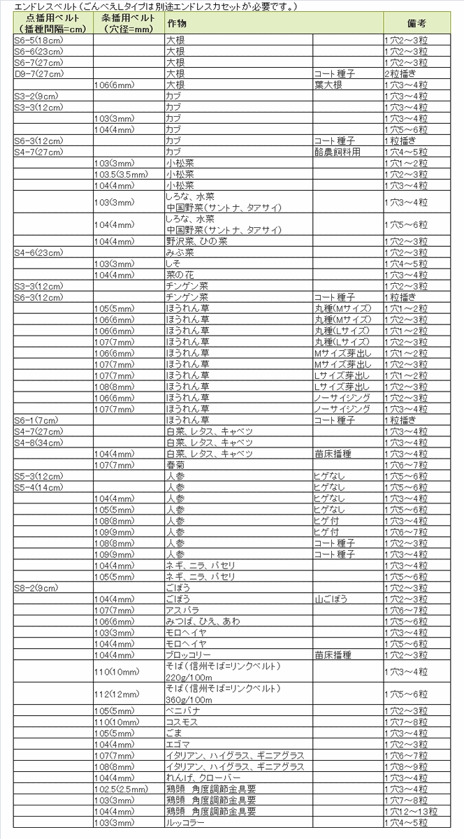 野菜播種機ごんべえ用ベルト