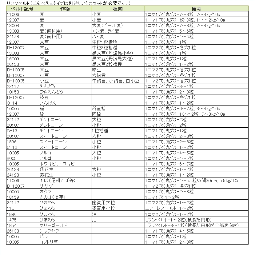 ベルトはそれぞれ作物に合わせた選択が必要です。
