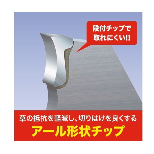 一流メーカーの確実な切れ味の一品。2段ロー付アール刃のため切れ味、耐久性抜群。抜群の切れ味で刈払機にかかる負担が少なくなります。