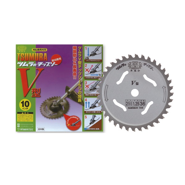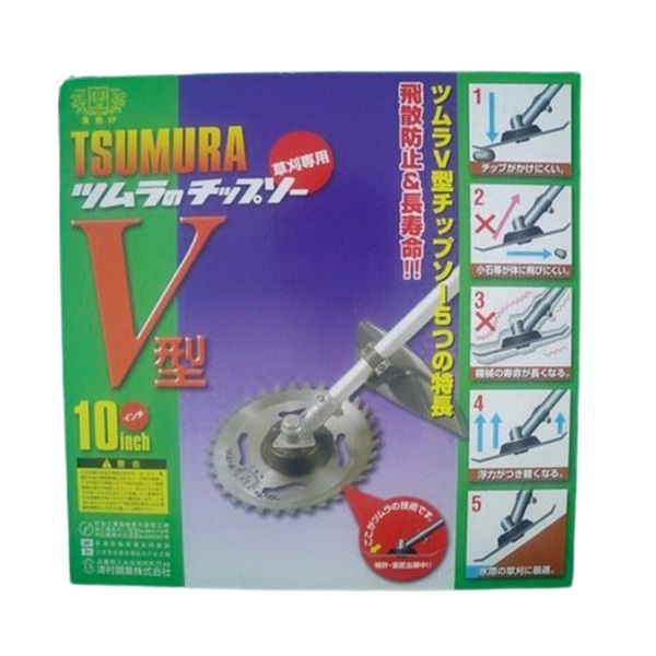 切断位置と接地位置が違うのでチップが欠けにくい。小石等が体に飛びにくい。安定回転で機械本体の寿命が長くなる。浮力がついて先端が軽くなる。水際の草刈作業に最適。