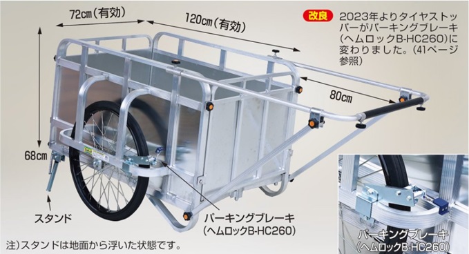 ・強度の高いノーパンクタイヤ(TR-26×2-1/2N)を採用のため重量物を