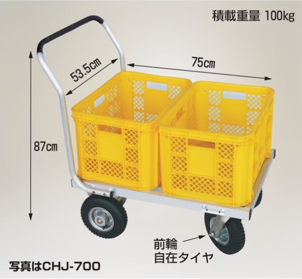 自在タイヤがハンドル側に付いていますから、重い物を載せた時や、