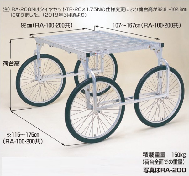 ・タイヤ幅に合わせ荷台幅も調節できますから作業に合わせてセットできます。