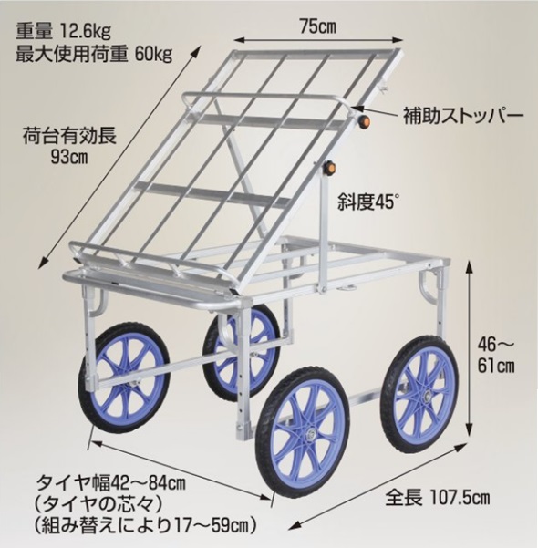 愛菜号アルミ製ハウスカー タイヤ幅調節タイプ