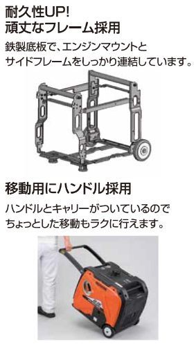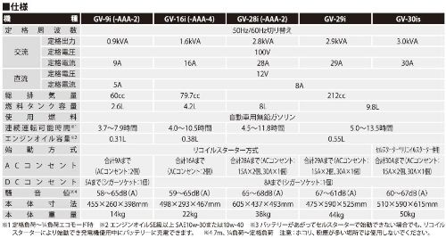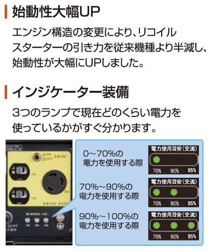 〇特長:DC出力にシガーソケットを採用し、エコスイッチ搭載で低騒音、低振動を実現
