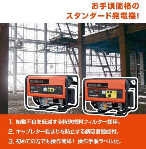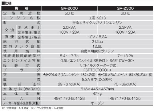 ・始動方法:リコイルスターター方式 ・運転時間(定格負荷~1/4負荷):8.4~17.7時間