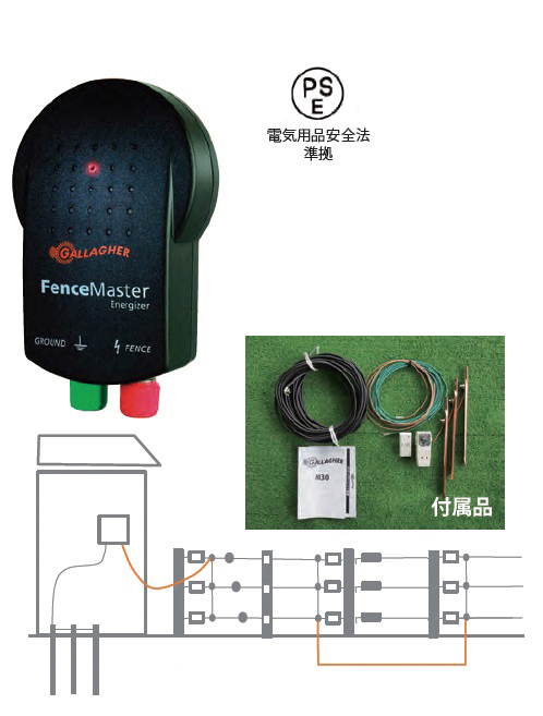 屋内に取り付けるパワーユニットから柵までの延長ケーブルです。