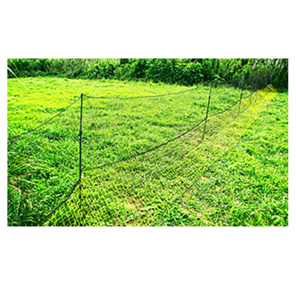 垂直の主ネットの途中に取付られた斜め張りの副ネットが動物よ近寄せず、効果を発揮します。