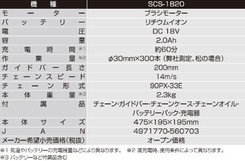 工進 充電式小型チェンソー SCS-1820