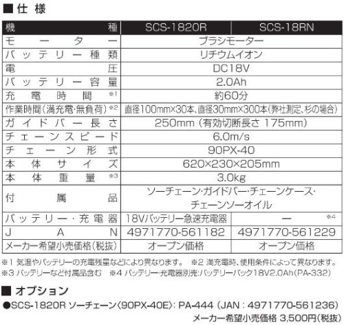 工進 充電式小型チェンソー SCS-1820R