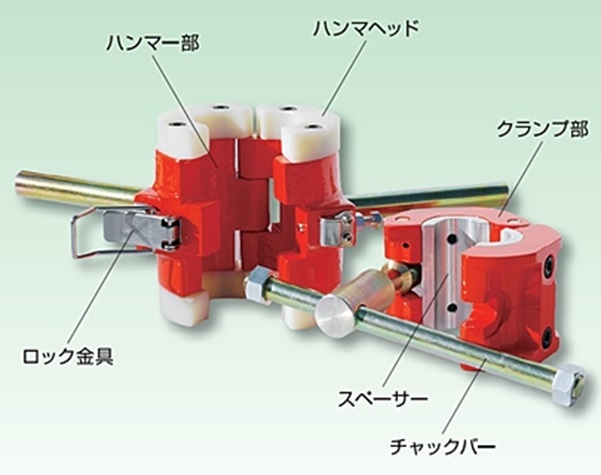 ・パイプの上を叩かなくて済むので背の届かない長尺パイプにも使用可能です。