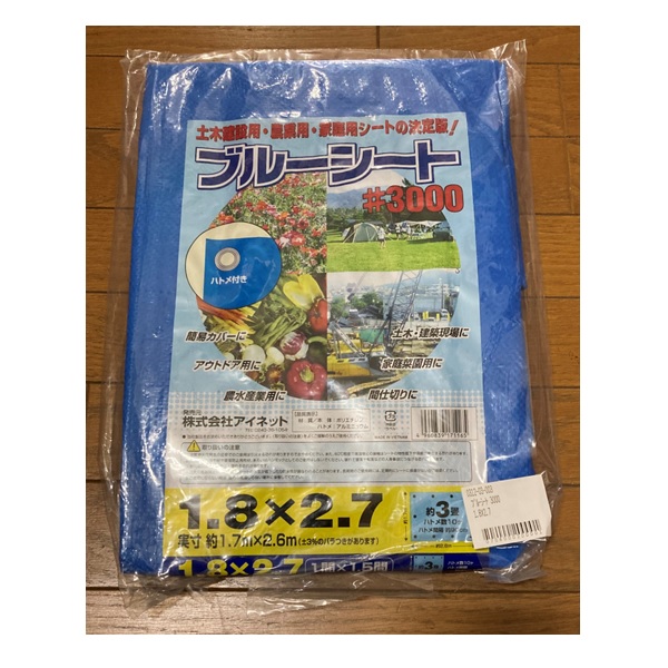ポリエチレンの生地に良質のポリエチレン樹脂を両面にコーティングしたもの。軽くて長持ち。#3000タイプの防水シートです。
