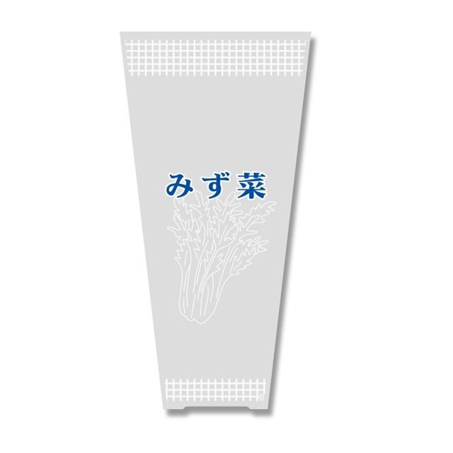 防曇性野菜専用袋(曇らない・高透明)、印刷『みず菜』、厚さ0.02mm。水抜きシールタイプ。 単位 100枚入り